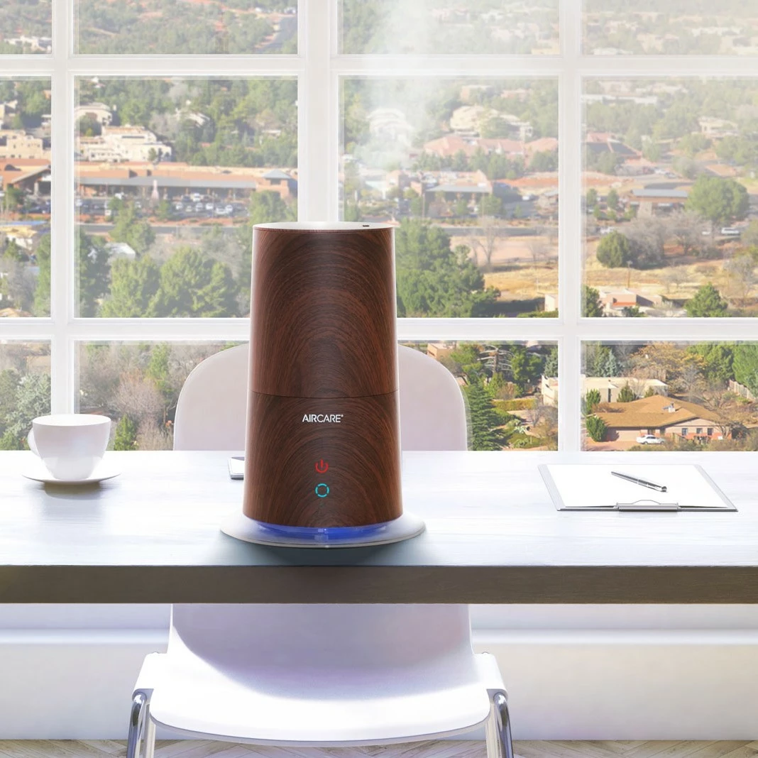 Humidify your space in style with the AIRCARE Mesa Ultrasonic Humidifier. Finished in rich walnut wood, this humidifier uses cool or warm mist to add needed moisture to your winter air.