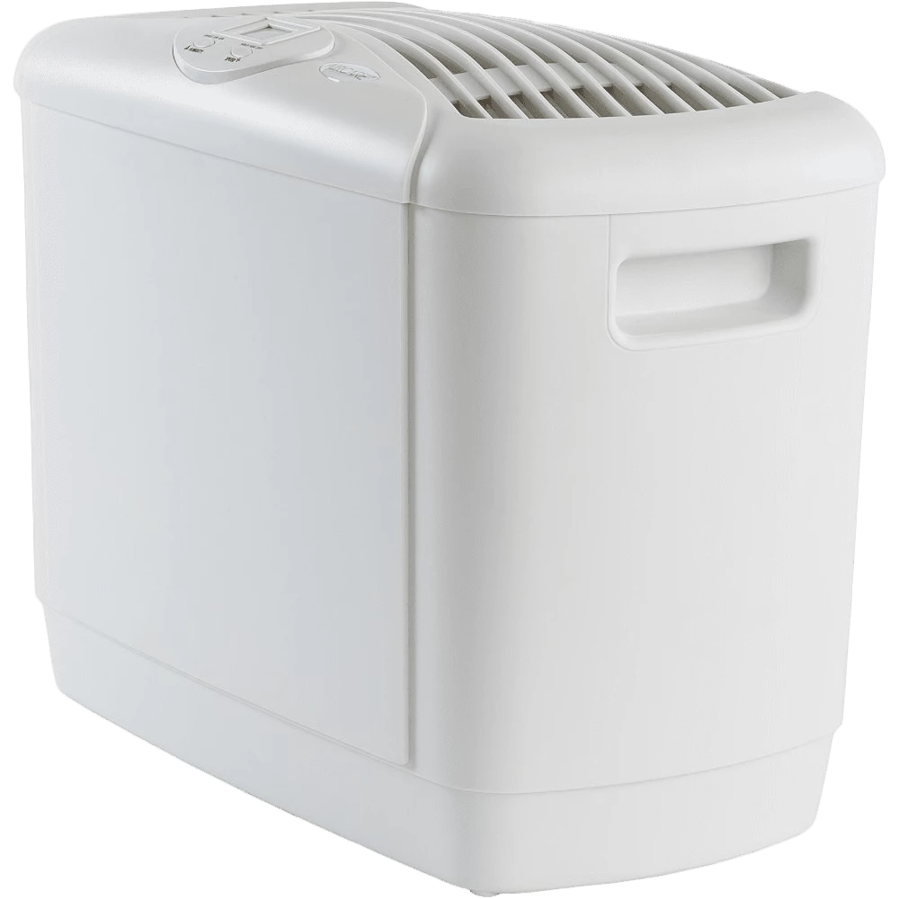 Injecting 3.79 gallons of moisturized air per day into your environment, the AIRCARE 5D6-700 features an easy top-fill water tank that holds 3 gallons of water, a 4-speed fan, and 2 AHAM-certified wick filters that absorb mineral deposits from hard water.