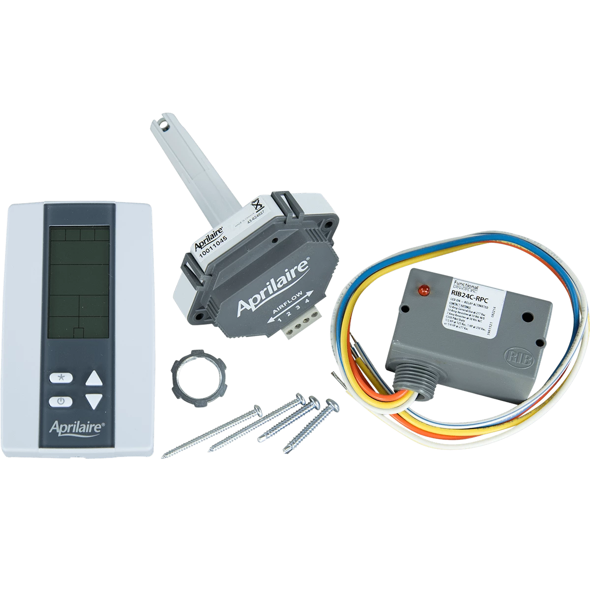 The Aprilaire 63 Automatic Digital Modulating Control Package is designed for use with the 801 Steam Humidifier and allows precise control over the relative humidity level in your home. The package includes a digital modulating wall-mounted humidistat, duct sensor, blower activation relay, and outdoor temperature sensor.