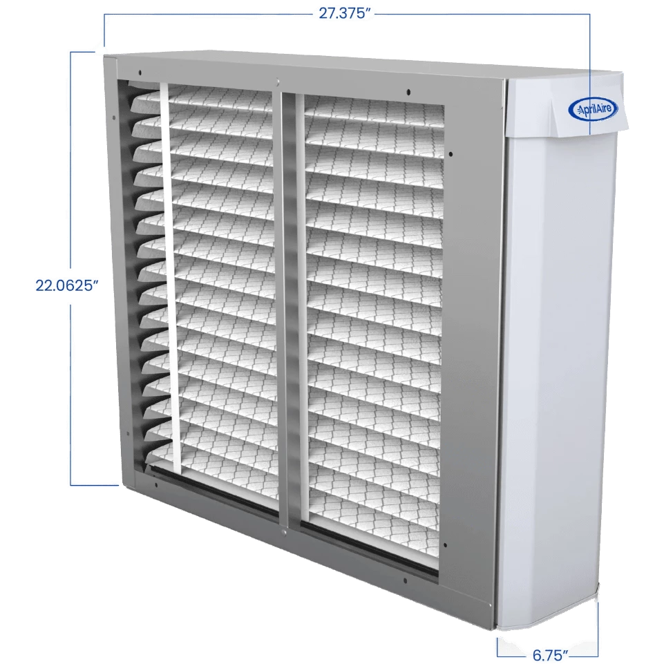 - Aprilaire 2000 Series Air Purifier: Select from either an Aprilaire 2210 (Duct Size: 20 “x 25″) or an Aprilaire 2410 (Duct Size: 16″ x 25”) air purifier. These ducted air purifiers integrate with your HVAC system. By effectively filtering out allergens, they ensure clean and fresh air in every room. .