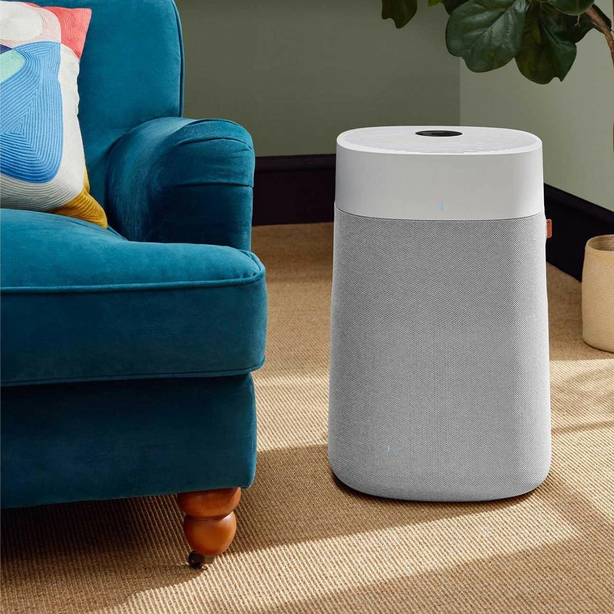 Particle sensors in the Blue Pure 211i Max constantly measure PM1, 2.5, and 10 (fine particles) in your air, displaying the IAQ status via the small light on the front.