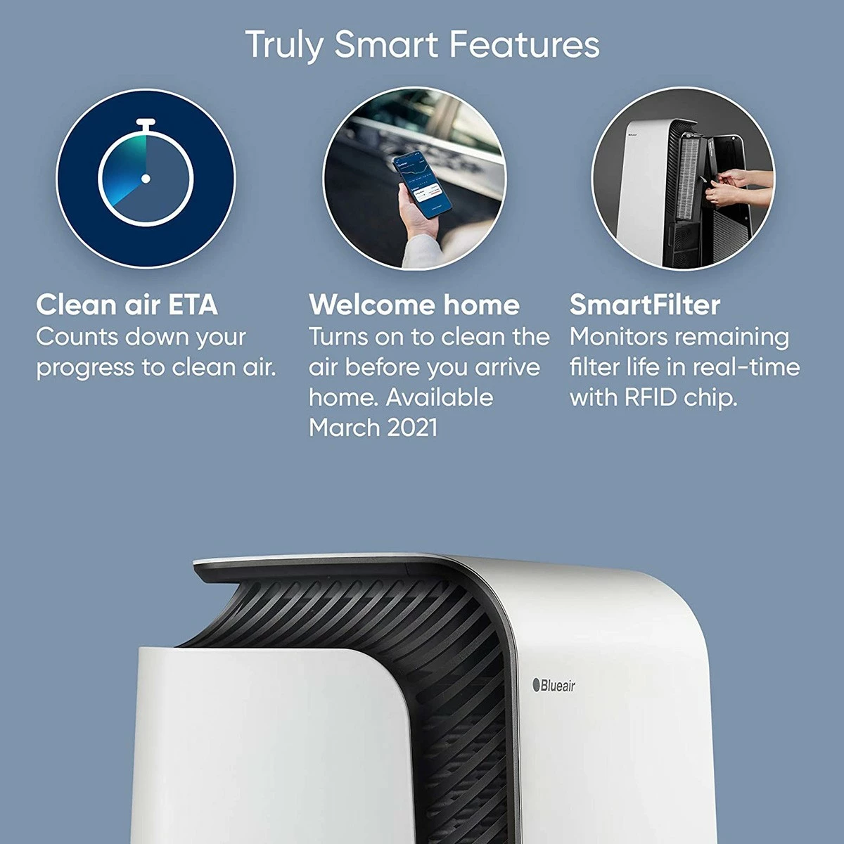 Have total control of this Blueair air purifier from anywhere. It can be monitored with a smartphone or tablet, or just with the sound of your voice, via the Blueair app (, ). Create schedules, monitor filter life, check your indoor air quality, and more.