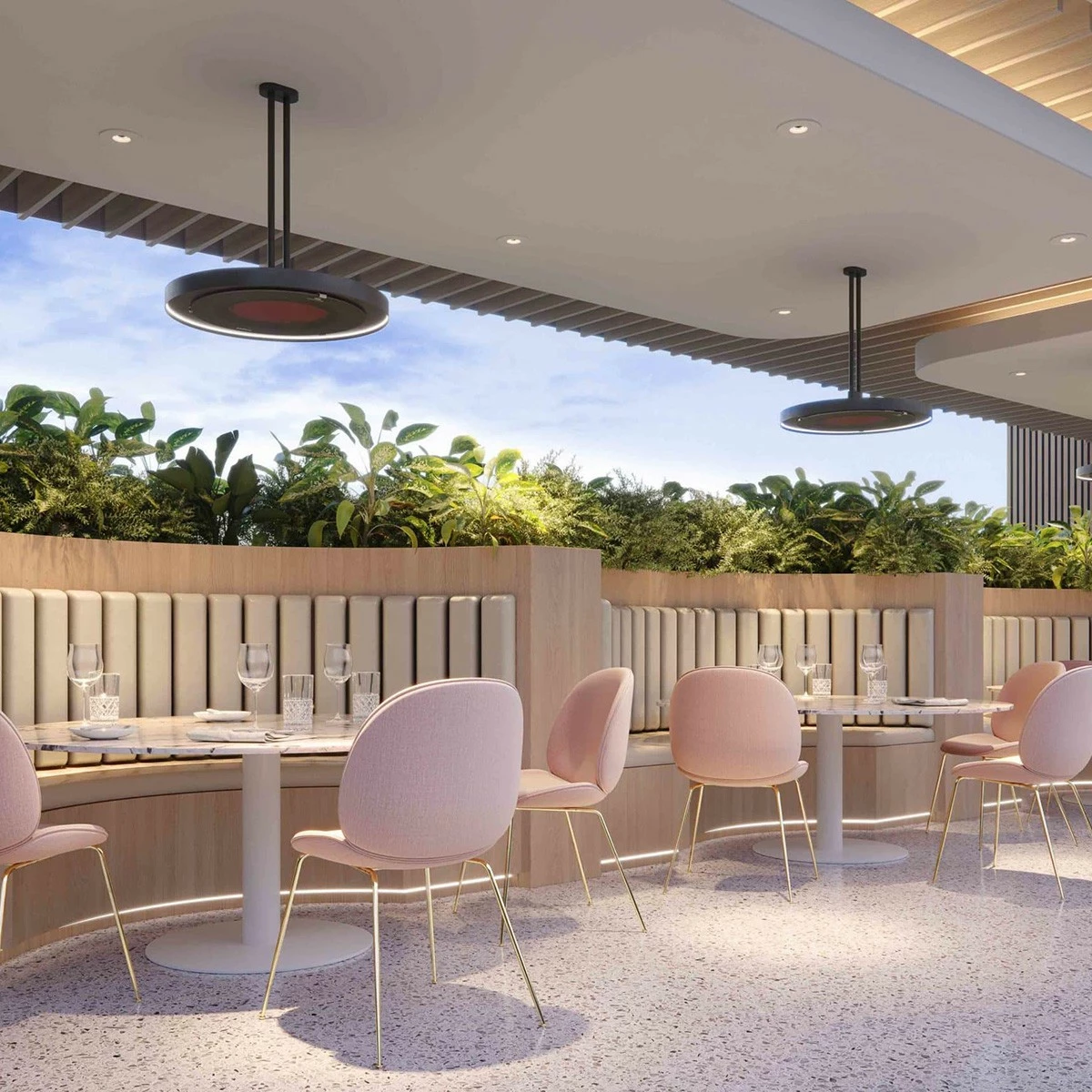 The Eclipse Smart-Heatâ„¢ Electric Pendant Heater will allow you to go straight from dinner to drinks thanks to its dimmable LED lighting rail and 3 different heat settings.