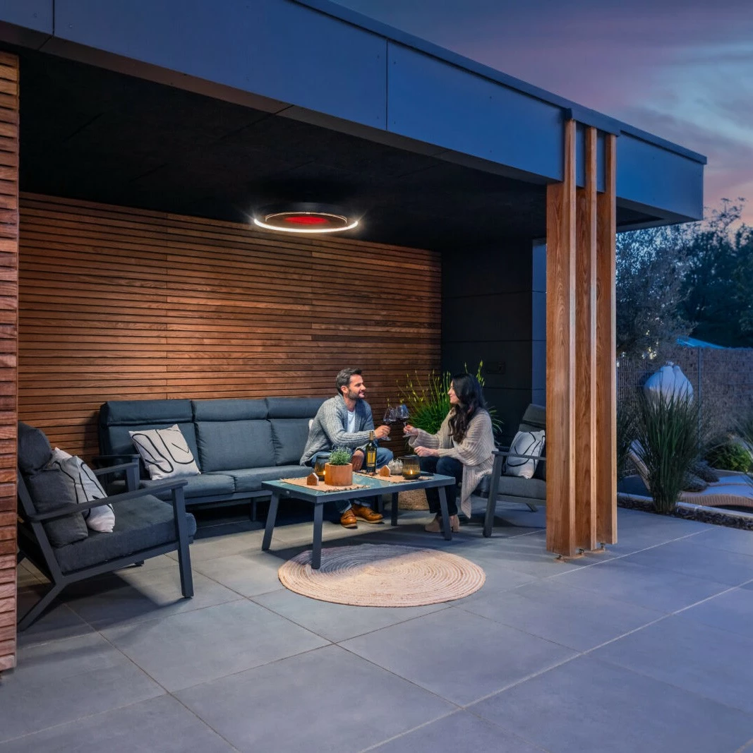 With its sleek, fully sealed ceramic screen and matte black appearance, this versatile outdoor heater strikes the perfect balance between ambiance and functionality. Its elegantly understated style compliments any design-focused outdoor environment.