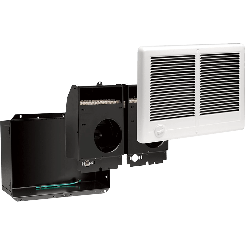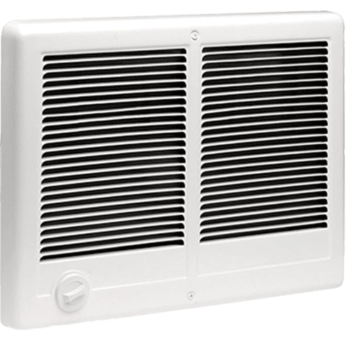 Use the built-in thermostat to adjust heating in your room. Simply turn the knob to the right to increase your heat level, and this wall heater turns off to conserve energy. Each Cadet model also features an innovative heating system has two nichrome coil elements. This dual-design means more effective heating, and a quiet fan pushes warm air around your home.