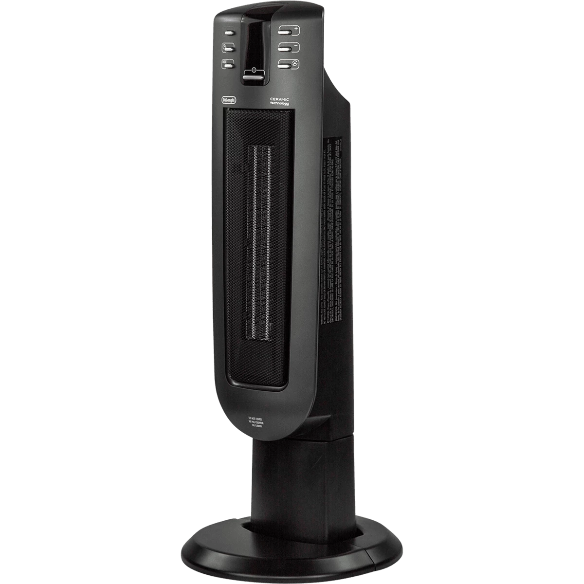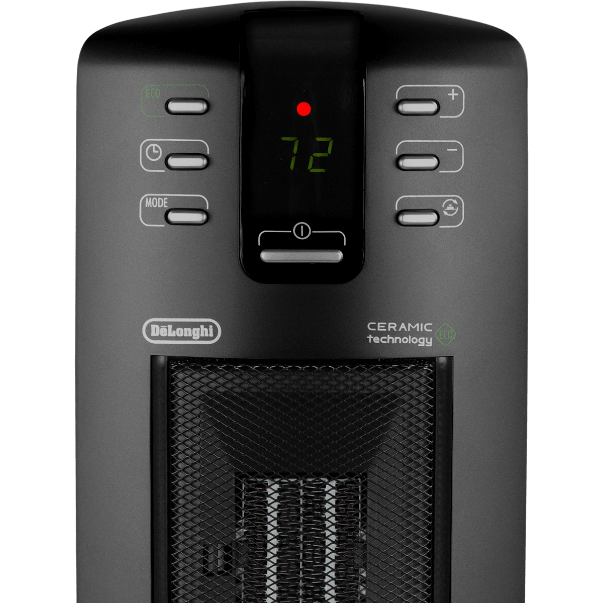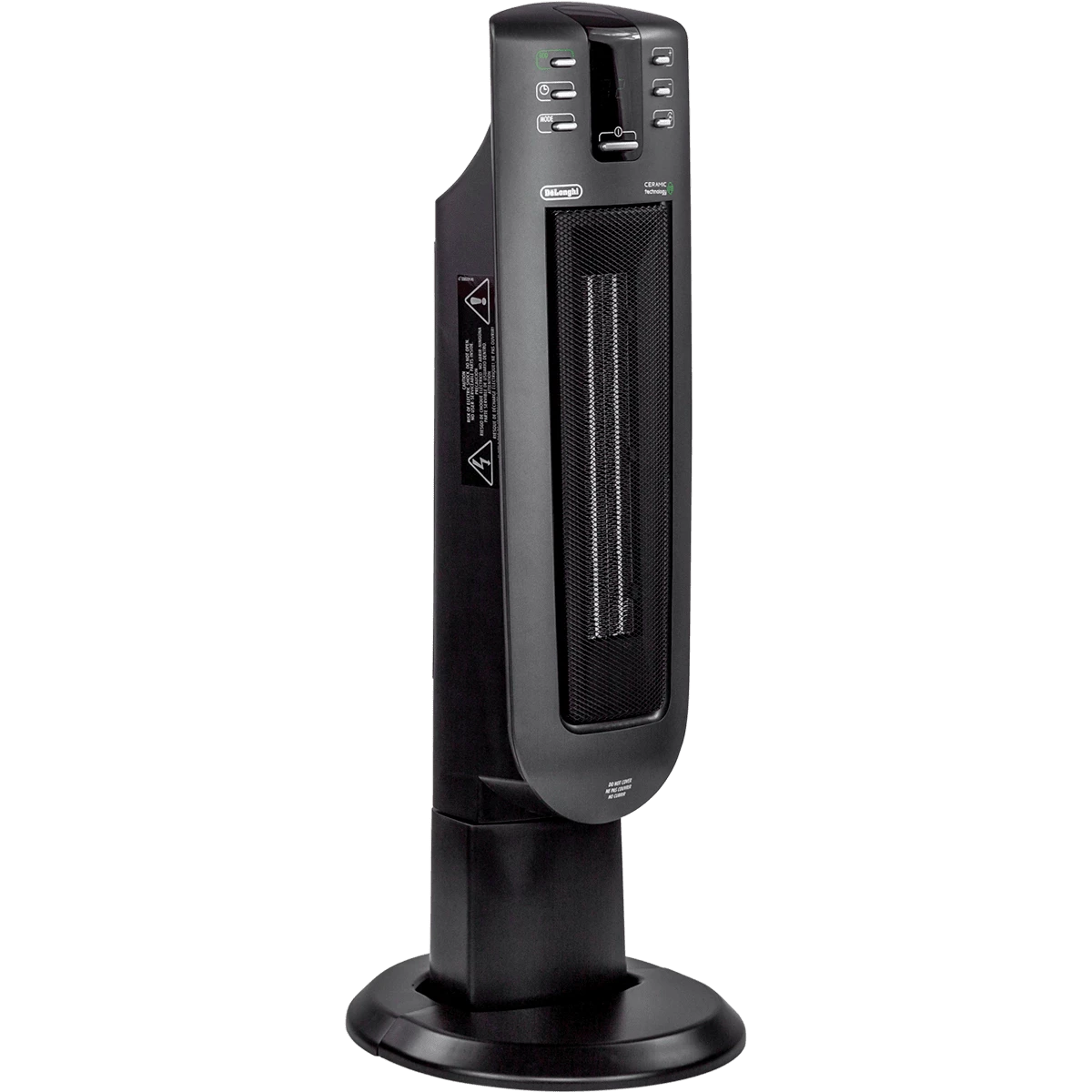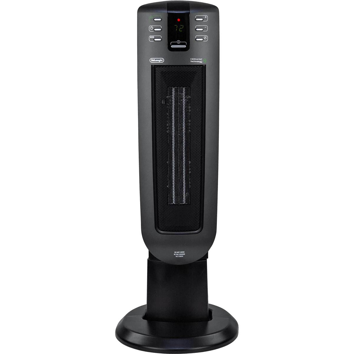 The 27-inch high DeLonghi TCH7690EDR Ceramic Tower Heater combines modern style with upgraded usability. The ceramic heating element safely provides 5,118 BTUs of fast, powerful heating for areas up to 150 square feet, while providing effective directional and even heat distribution with oscillation.