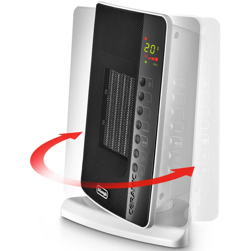 - Ceramic Heating: The DeLonghi DCH7093ER Ceramic Heater uses a ceramic disc heating element and fan to evenly spread warm air across your room. Its wide heating element is tucked away to keep its exterior cool-to-the-touch.Â