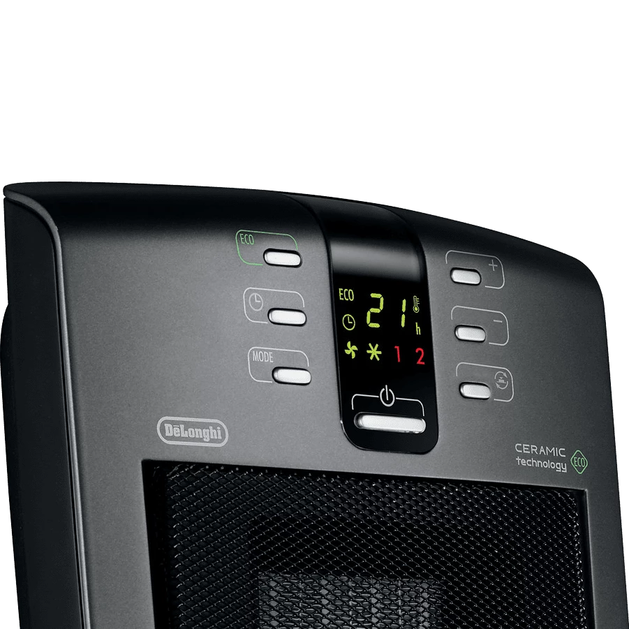 Enjoy personalized comfort with this DeLonghi ceramic heater. You can program your heat level, program the heater to turn on or off, or use the oscillation feature to move warm air around your space.