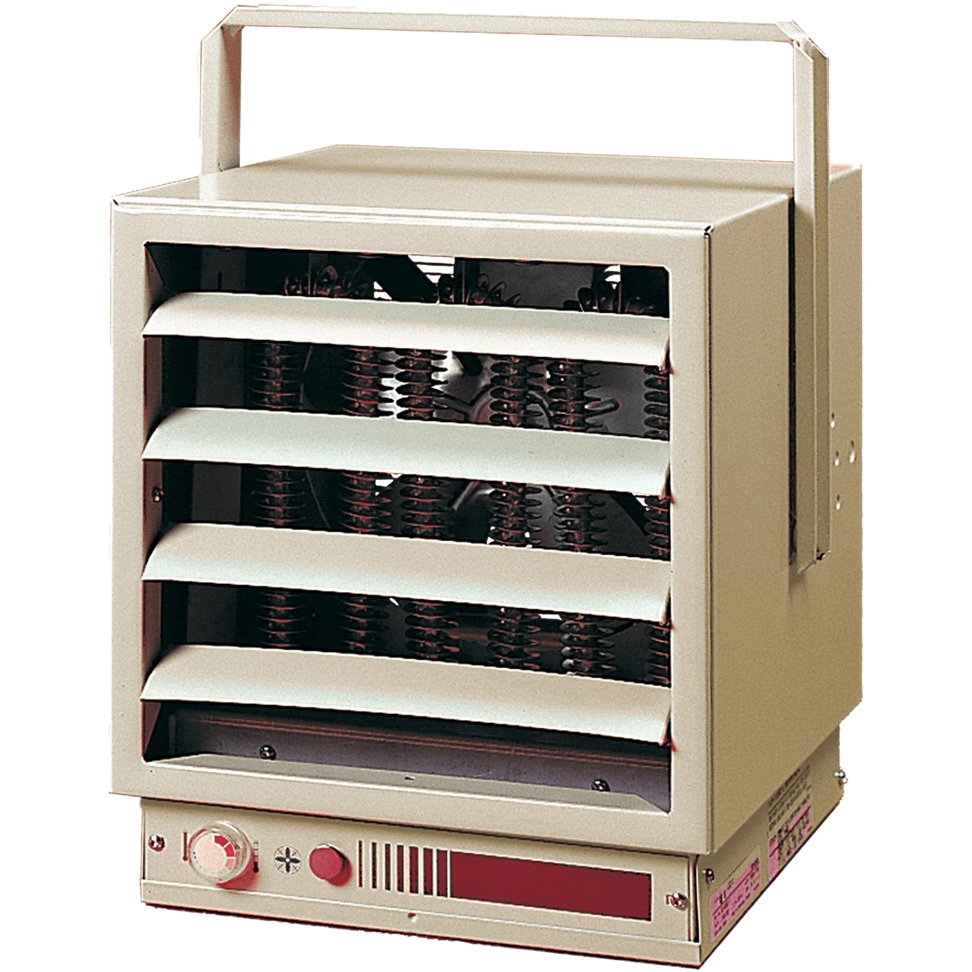 Keep workspaces, garages, warehouses, and more comfortable all winter long with the Dimplex 17,000 BTU Industrial Unit Heater with Built-In Thermostat. Equipped with a ceiling hanger bracket and adjustable thermostat, it makes it easy to find the right temperature for nearly any space. Featuring rugged construction, this industrial heater is built to withstand the rigors of daily use.