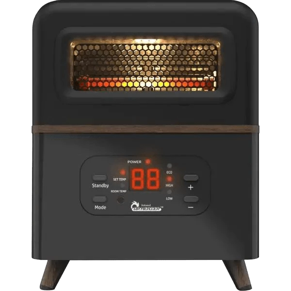 Efficiently and reliably add heat to large rooms with the Dr. Infrared Heater DR-978. This is one of the most compact infrared space heaters available. It heats bedrooms, living rooms and basements quickly because of its dual heating system.