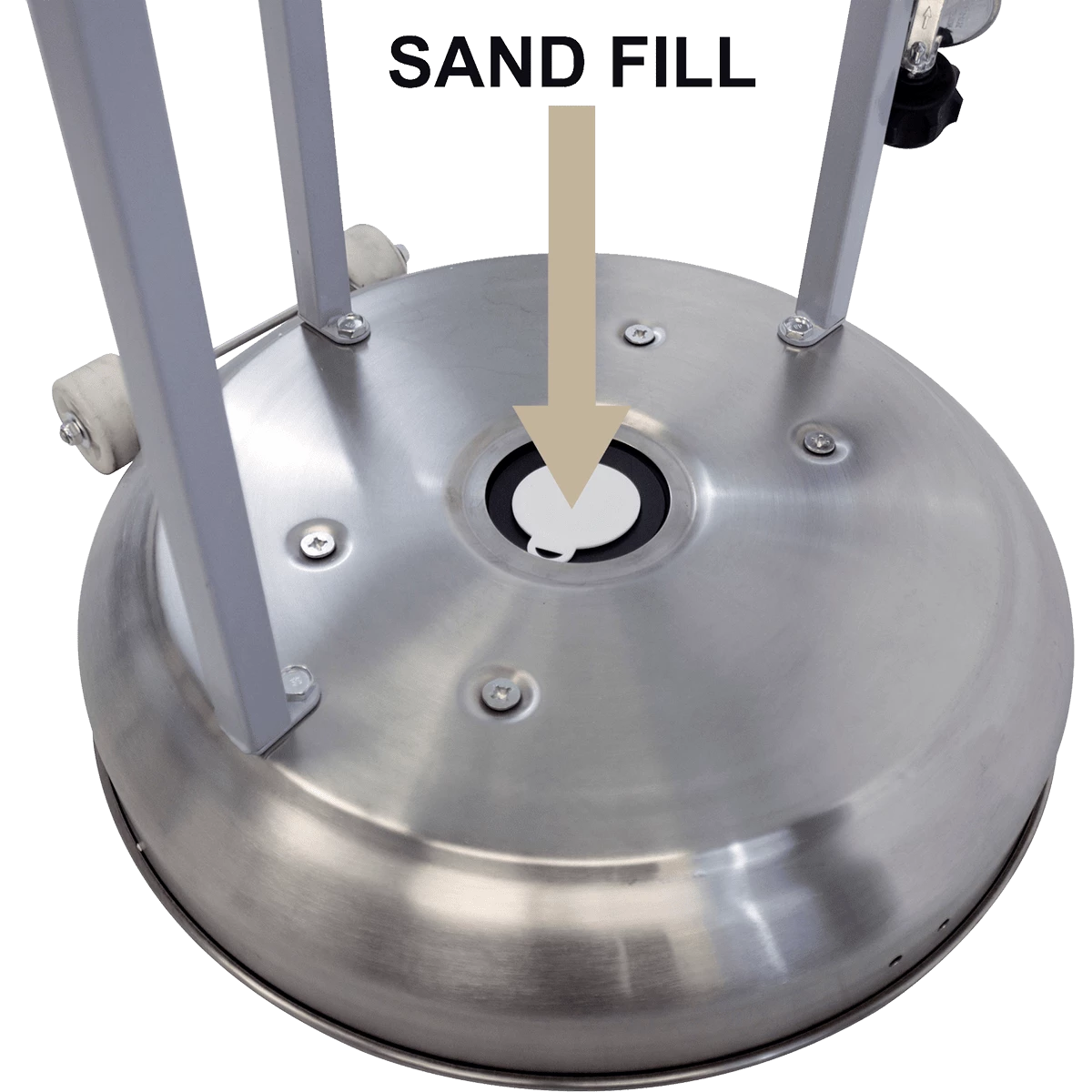 Increase the stability by filling the base with sand prior to final assembly. Simply remove the lid from its center and add basic playground sand available from your local home improvement store.