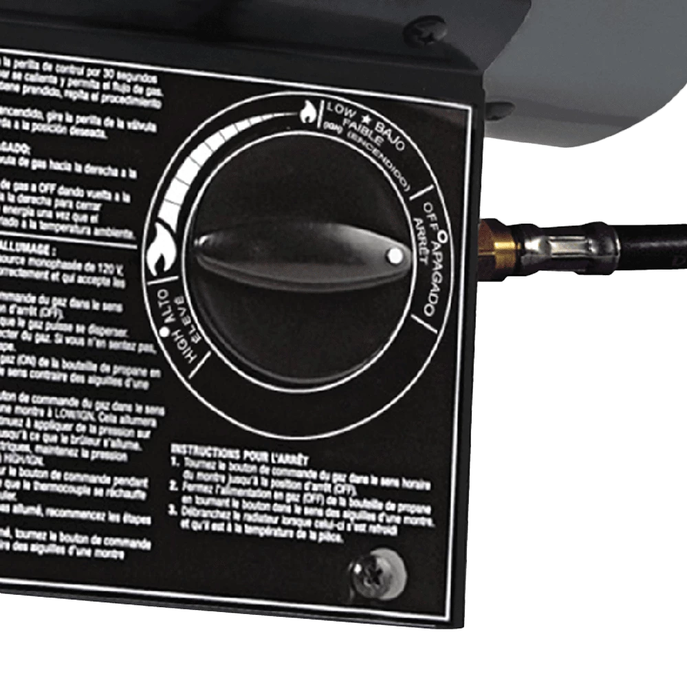 - Variable Heat Output: A variable heat setting (between low and high) puts you in complete control of the heater’s output. Only use the amount of heat you need to conserve fuel and energy.