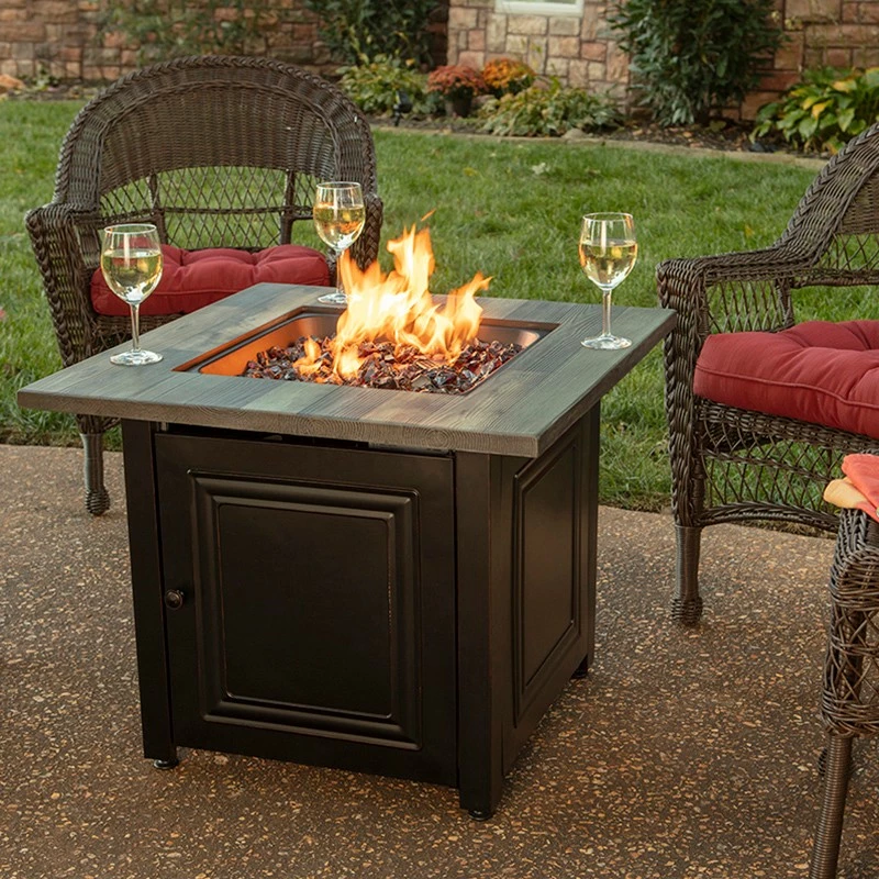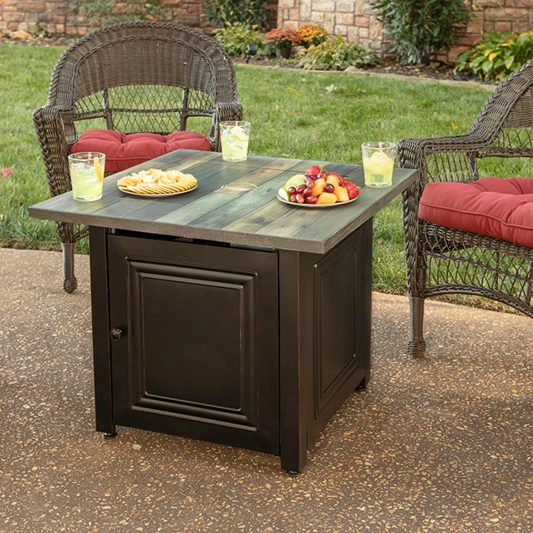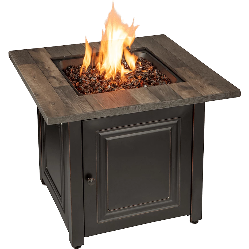 Add rustic charm, immediate heat and ambiance to your patio with the Endless Summer Burlington. Its faux wood top and durable steel base create a durable and attractive centerpiece.Â