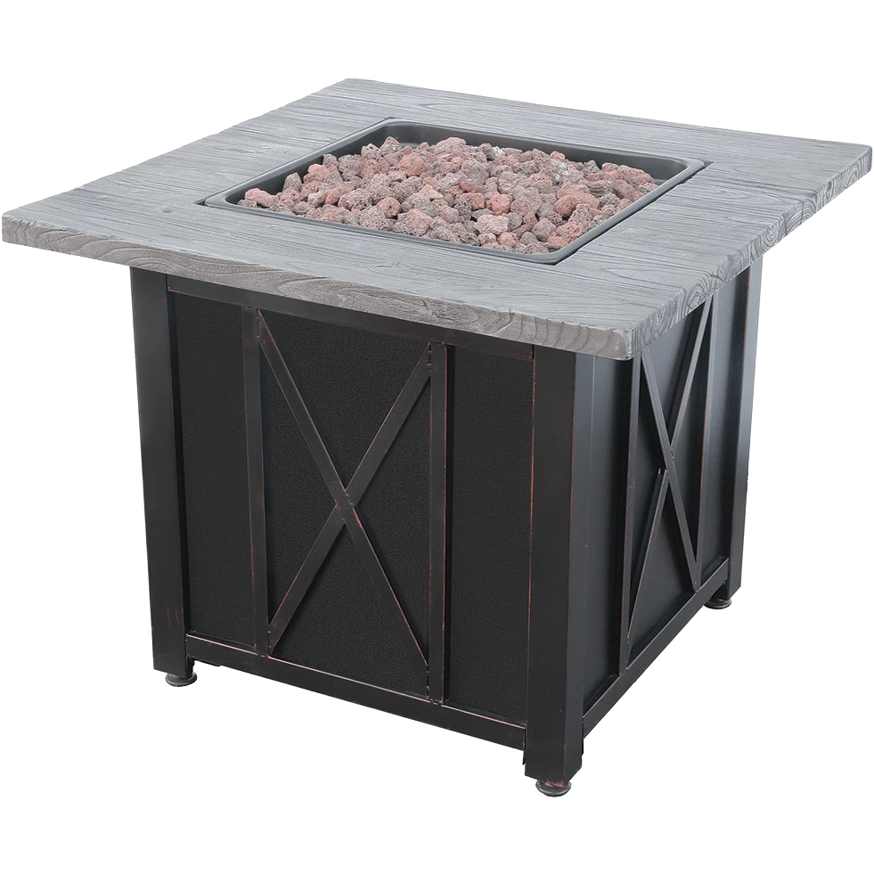 Make use of any backyard with the Endless Summer LP Gas Outdoor Fire Table with Wood Look Resin Mantel. Heat upwards of 750 square feet with the 30,000 BTUs. The solidity built resin mantle looks just like natural stone, and it is a great place to rest drink glasses or plates. The solid oil-bronze tank storage hides any 20-pound tank and the control panel.