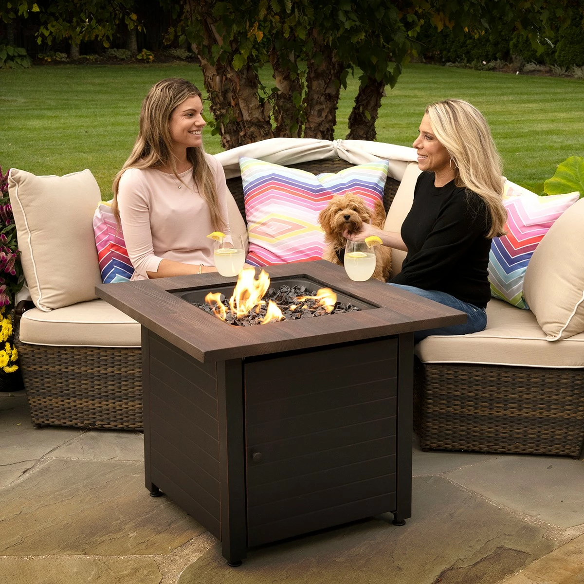 The propane-powered Endless Summer Spencer LP Outdoor Fire Pit features 50,000 BTUs of heat for decks and patios.