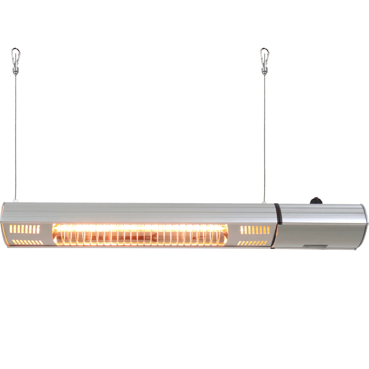 Keep outdoor spaces like patios and decks warm no matter the season with the Ener-G+ Wall Mounted Outdoor Water-Resistant Infrared Heater. Featuring a Gold heat bulb, this unit is designed to create 1,500 watts of instant warmth and deliver odorless heat making it a must-have for entertaining your family and friends. Stylish and with versatile installation options, this unit can be wall-mounted or hung from the ceiling.