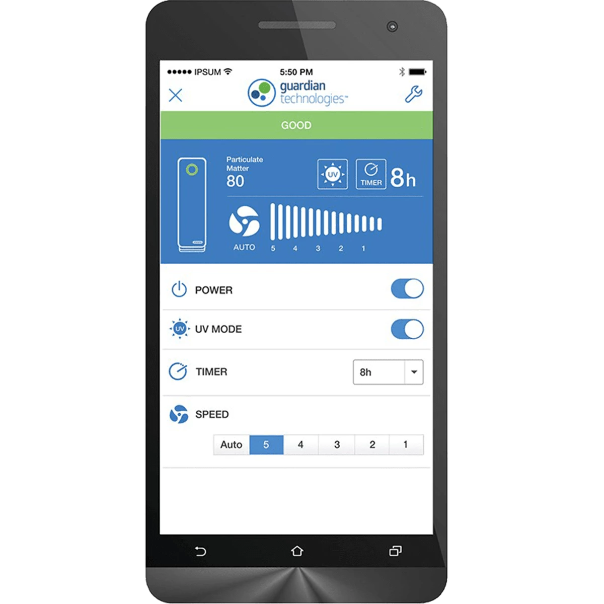 Set your ideal room air quality easily with the Germ Guardian 4-in-1 Smart Tower Air Purifier: