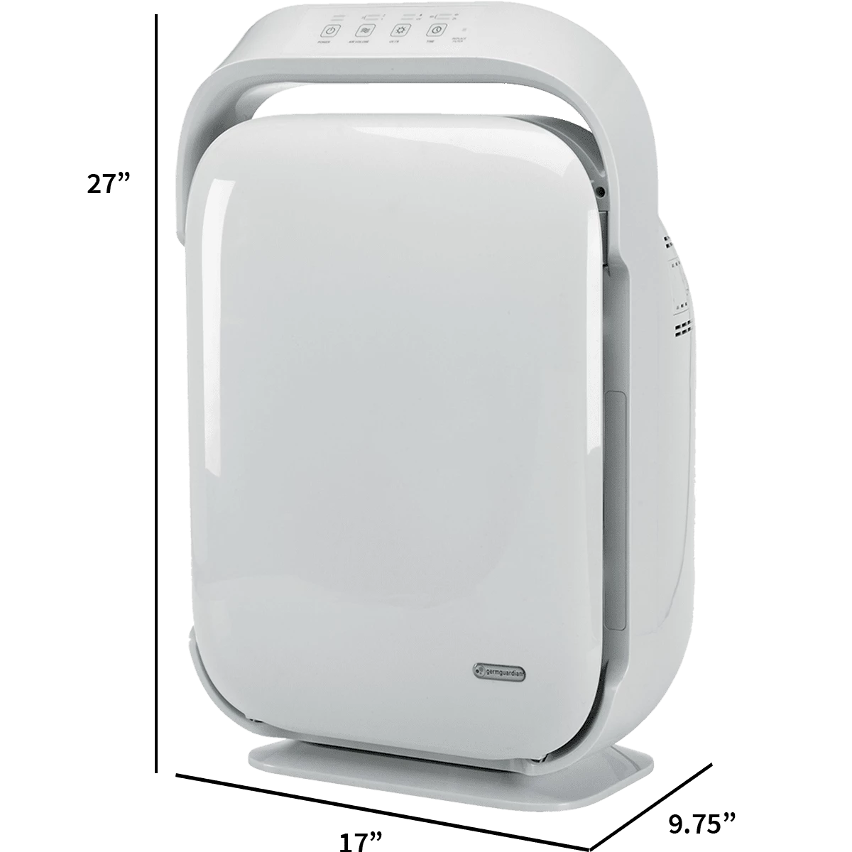 Equipped with a 3-stage filtration system, the GermGuardian AC9200WCA is designed for allergen and odor reduction. Before entering the the filtration system, air passes through a pre-filter screen extending filter life by capturing large dust particles and pet hair. The air then enters a True HEPA filter. This filter is designed to capture 99.97% of dust and allergens measuring as small as 0.3 microns, including the most common indoor allergens like smoke, dust, pollen, and airborne mold.