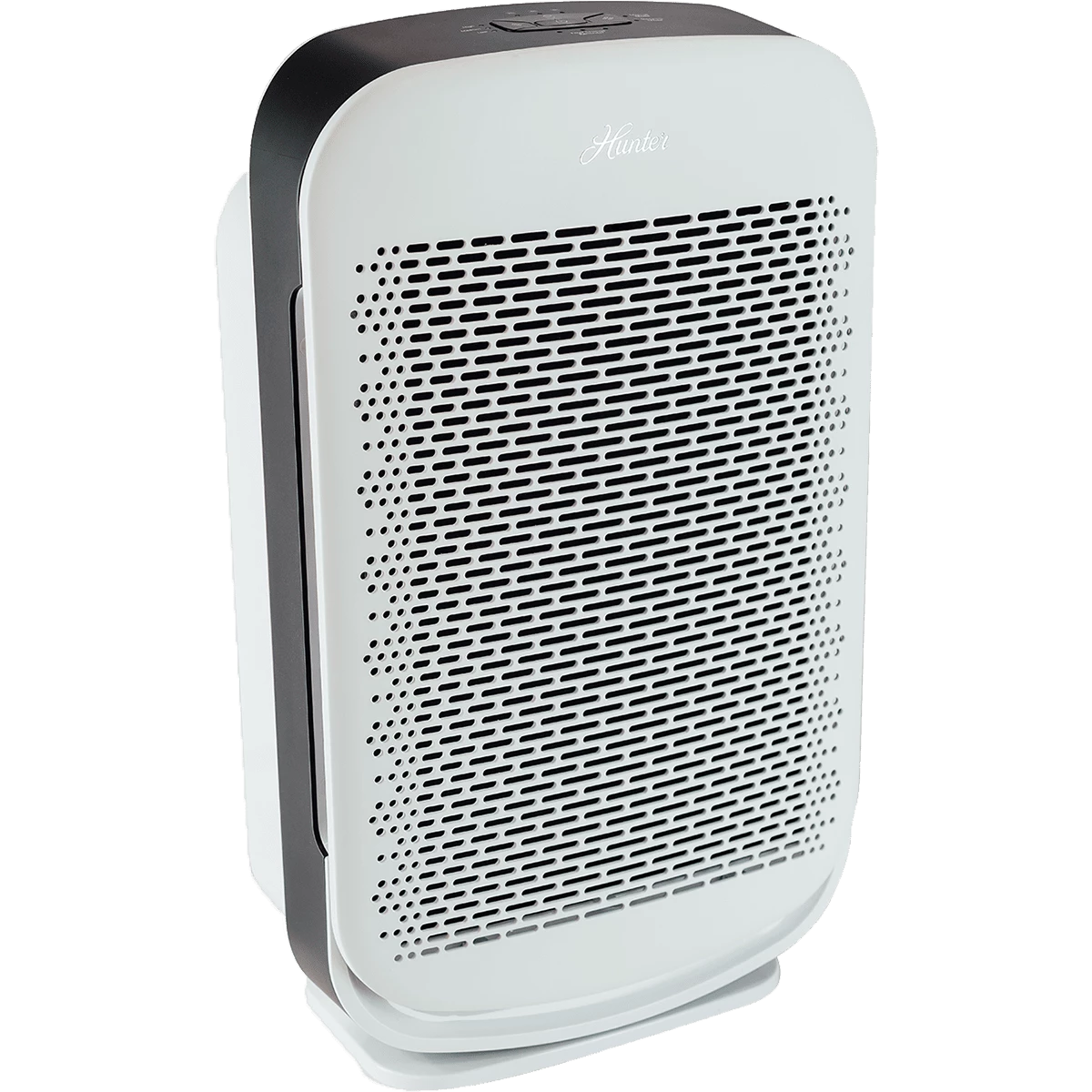 Simple manual controls allow you to make setting changes with ease. Use this Hunter air purifier in offices, bedrooms, kitchen areas and other rooms up to 300 square feet.Â