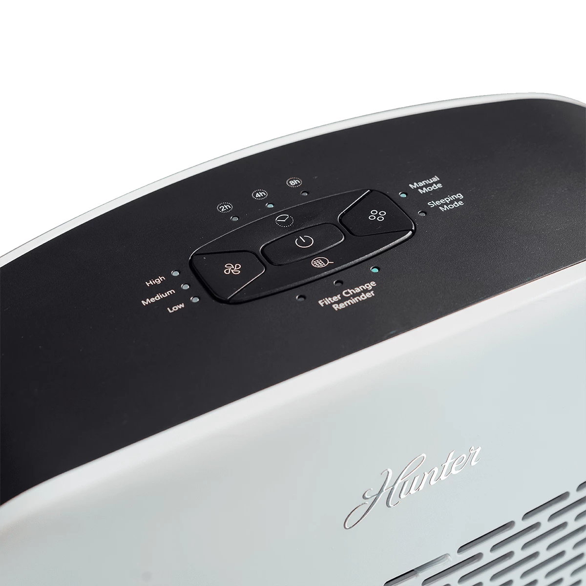 - Programmable Timer: Schedule this Hunter air purifier to turn off 2, 4, or 8 hours in advance.Â