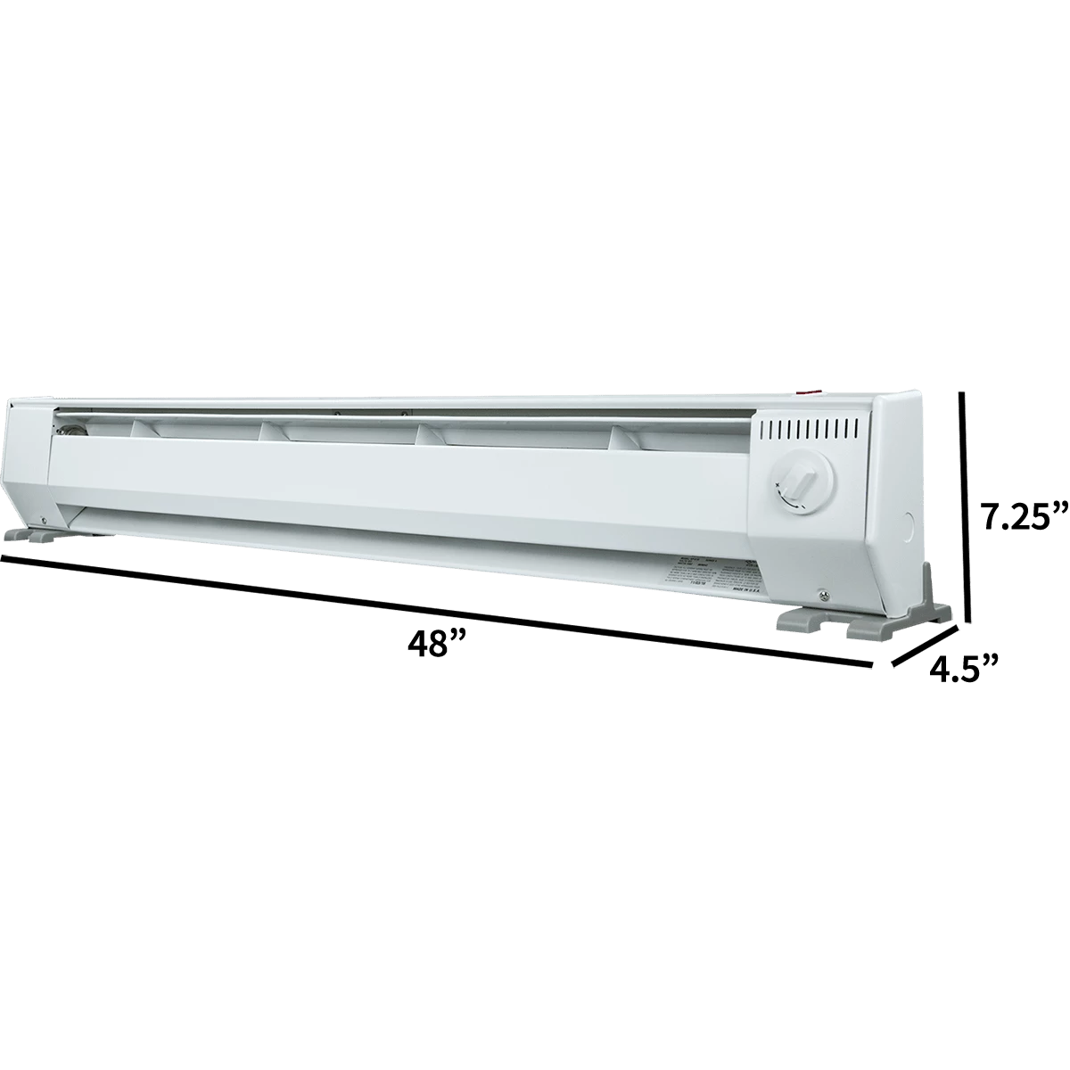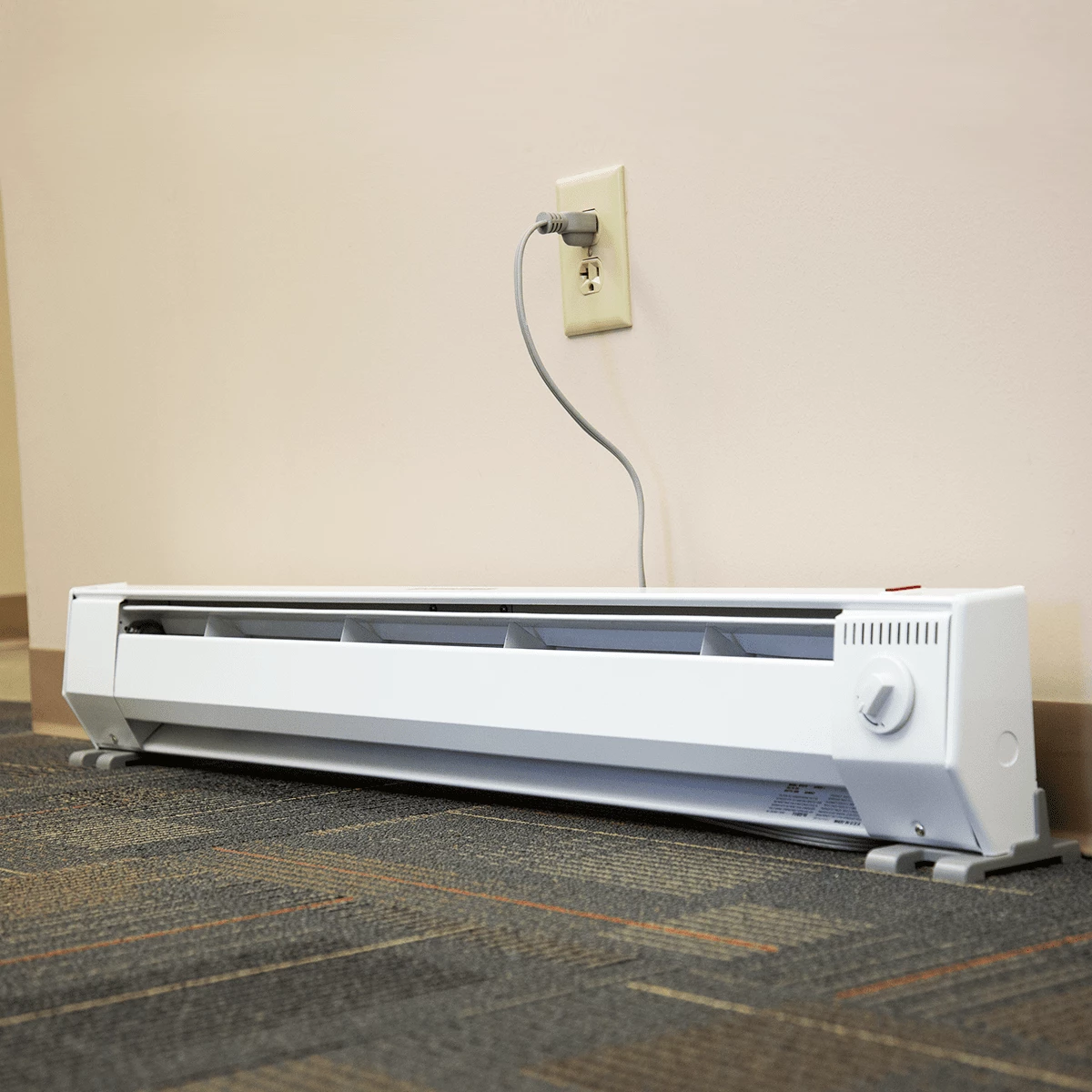 Conveniently Portable –  With your choice of 3-ft. or 4-ft. lengths, this lightweight baseboard heater has handle in back making it easy to carry from room to room as needed.