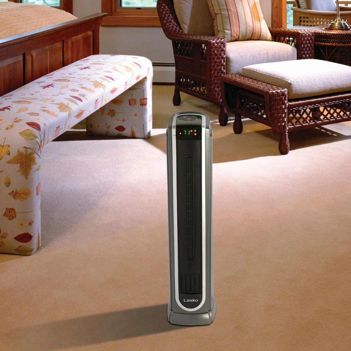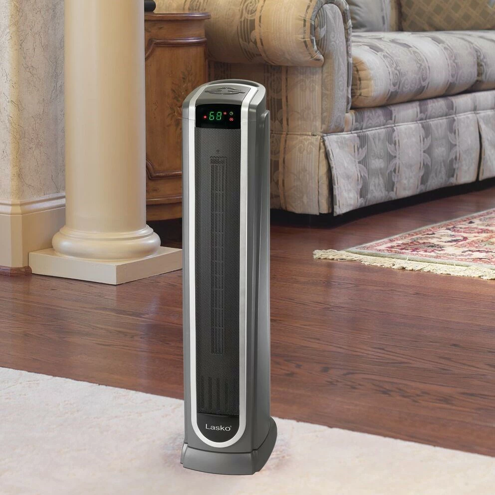 Add affordable heat in a sleek tower space heater design with this Lasko Ceramic Heater. This oscillating heater spreads warmth around entire rooms like offices or bedrooms. It also features a long ceramic heating element that extends heat more than other heaters.Â