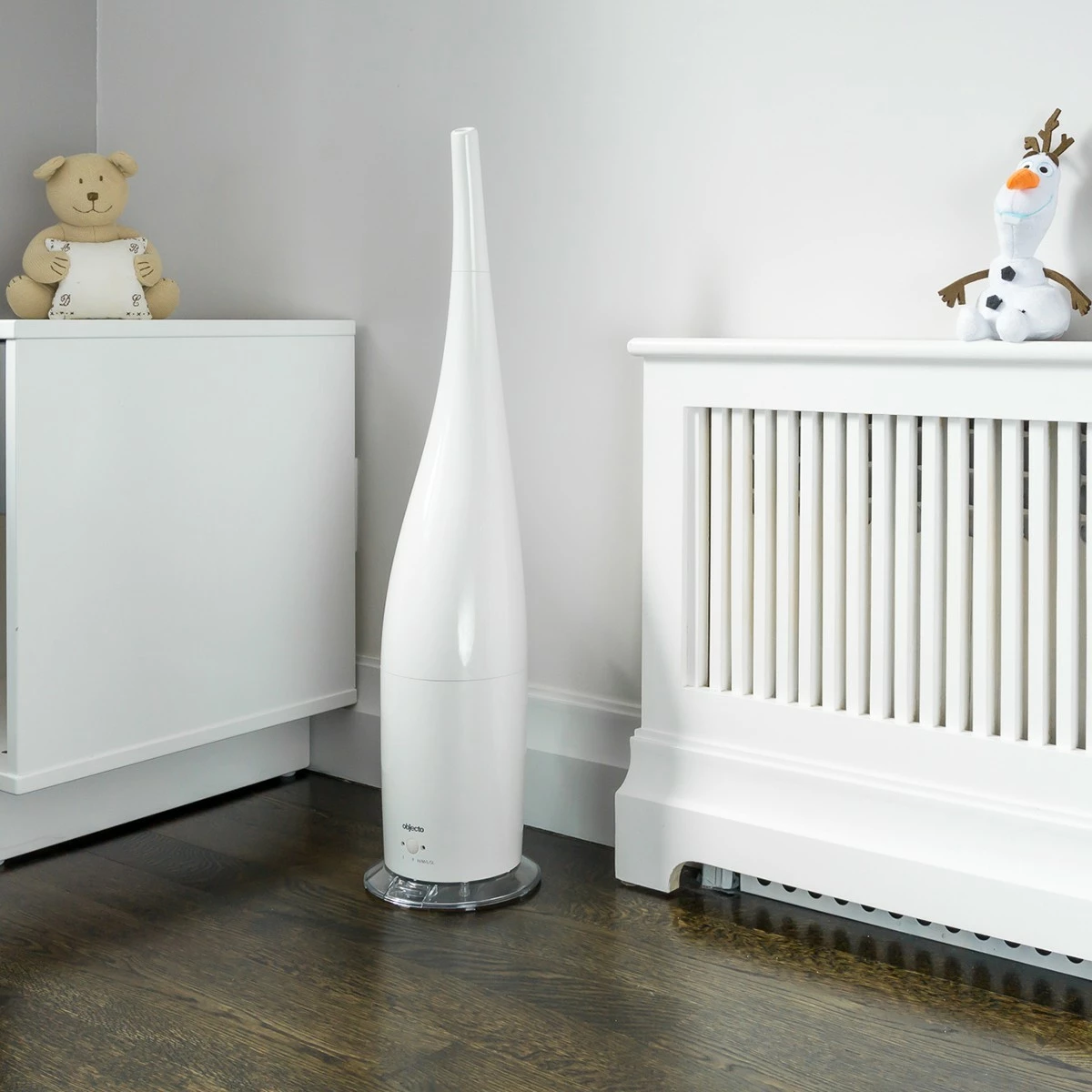 Humidify rooms up to 650 square feet with the stylish, quiet, and powerfully performing H7 humidifier from Objecto.