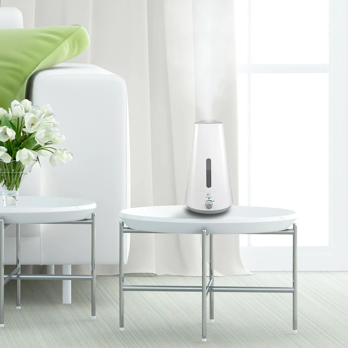 - Tabletop Humidifier: Compact and lightweight, this humidifier easily fits out of the way when in use or in a cabinet when stored.