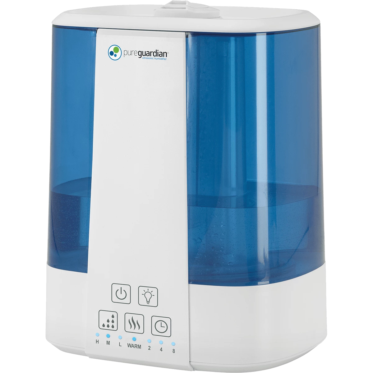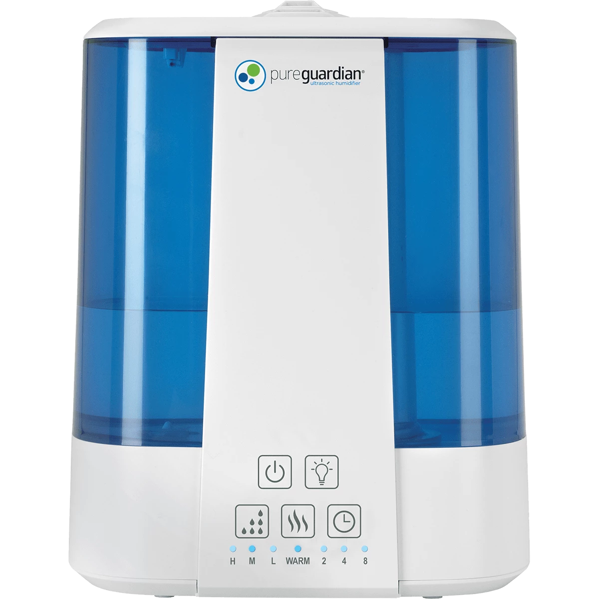 Featuring a large water tank, the PureGuardian Ultrasonic Cool and Warm Mist Humidifier delivers longer runtimes than comparable models. In fact, it can run continuously for up to 100 hours depending on the mist output level you select.