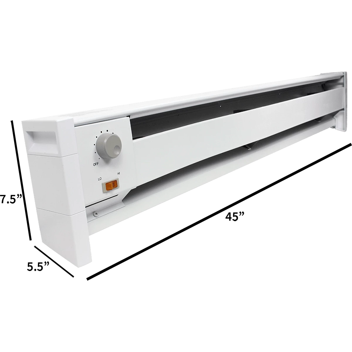 For your protection and to preserve the life of the appliance, this baseboard heater includes a two-pole thermostat with positive off as well as safety thermal cut-out protection.