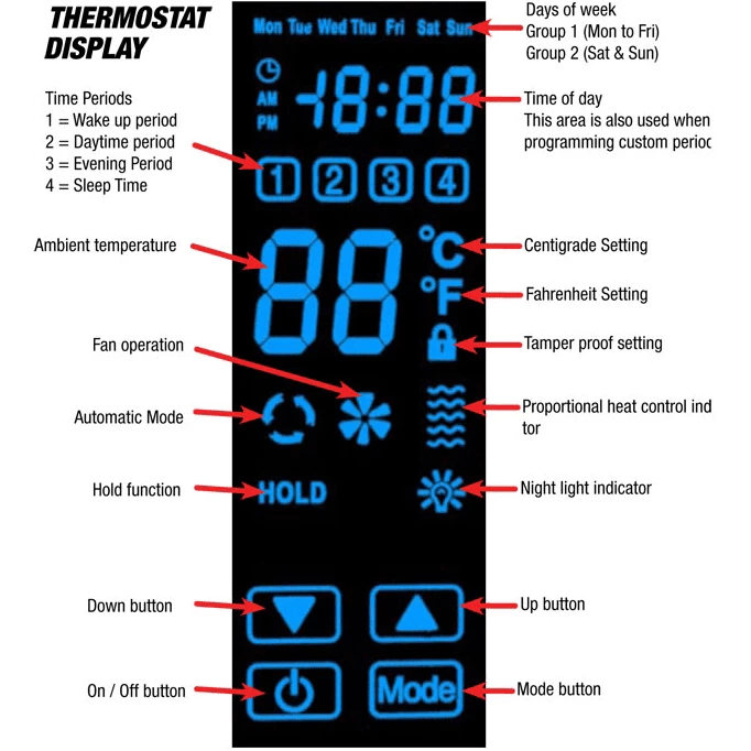 Few heaters come with the programmable options of the QMark HT1502SS. You can program this wall heater to turn on with specific settings for any day of the week. This not only takes the thinking out of using your heater, but it ensures it only runs when needed. Each day can be broken down into 4 distinct time periods (wake up, daytime, evening, and sleep), so you can literally program your desired settings for various times and days throughout the week. Â Â
