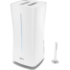 The Stadler Form Oskar Big Humidifier features a 1.5-gallon reservoir that you can add tap water to through a flip-down panel on the front of the device. The top half of the humidifier lifts off when you want to fill the water tank at the sink. Patented 4V-filter technology helps keep the water source clean and healthy. Plus, Stadler Form’s Water Cube feature prevents the growth of germs and bacteria inside the reservoir.