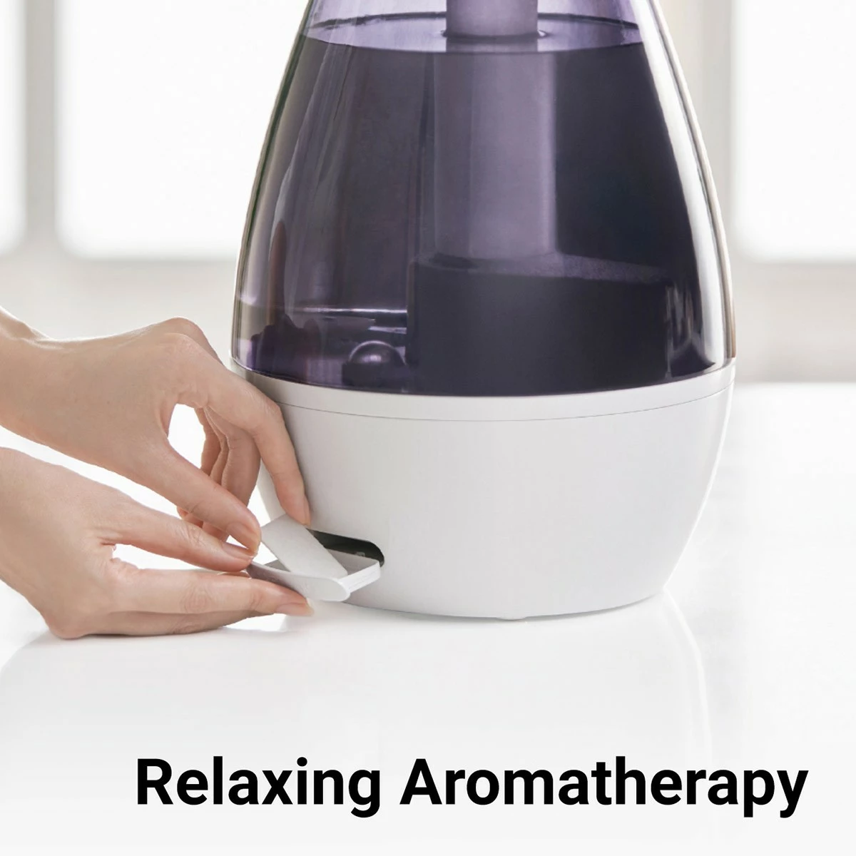 - Instant Relaxation: Pre-soaked aroma pads are included and simple to insert. This humidifier with aromatherapy enriches the air and creates a relaxing aroma. Lavender and eucalyptus aromas are included with purchase. Â
